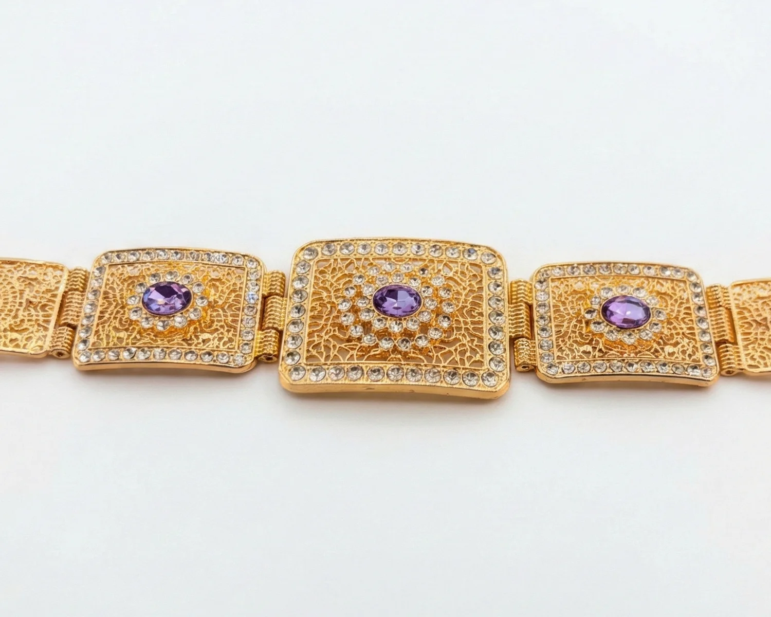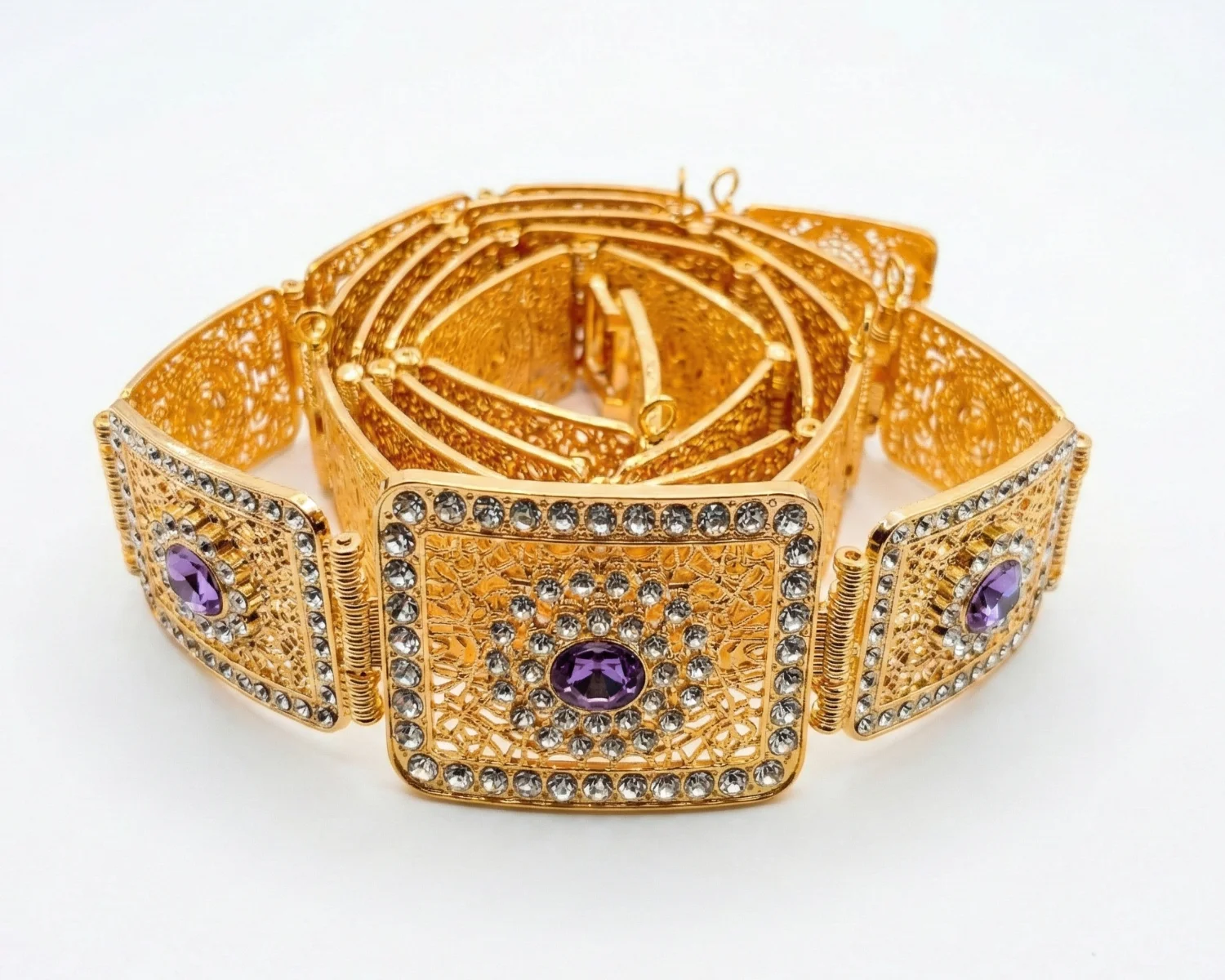 Ceinture Mdamma Filigrane Carrée — Acier Doré & Strass